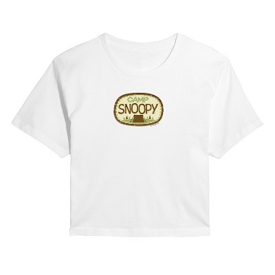 Women's - Peanuts - Camp Snoopy Faux Patch Cropped Graphic T-Shirt