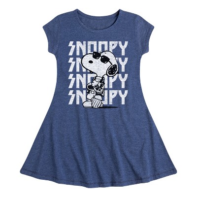 Girls' - Peanuts - Snoopy Rock Name Repeat Fit & Flair Cap Sleeve Graphic Dress