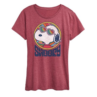 Women's - Peanuts - Snoopy Red Heart Short Sleeve Graphic T-Shirt
