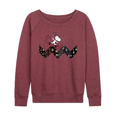 Women's - Peanuts - Snoopy Skating Pattern Lightweight French Terry Wide Neck Long Sleeve Graphic Shirt
