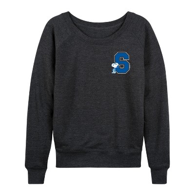 Women's - Peanuts - Snoopy School Lightweight French Terry Wide Neck Long Sleeve Graphic Shirt