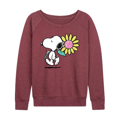 Women's - Peanuts - Snoopy Daisy Lightweight French Terry Wide Neck Long Sleeve Graphic Shirt