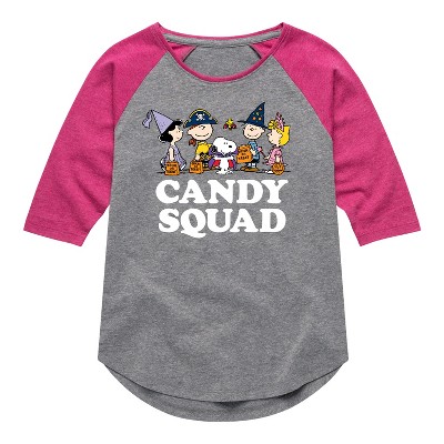 Girls' - Peanuts - Candy Squad Shirt Tail Raglan Graphic T-shirt
