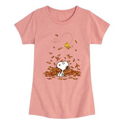 Girls' - Peanuts - Snoopy & Woodstock Leaves Fitted Short Sleeve Graphic T-Shirt
