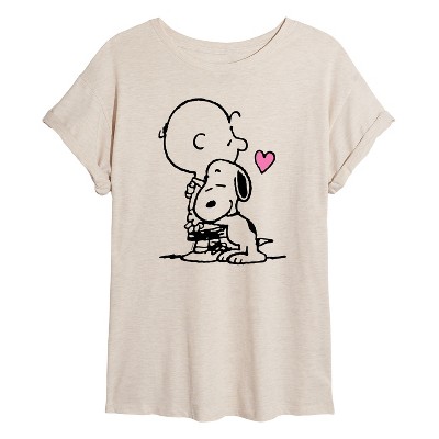 Women's - Peanuts - Snoopy Charlie Hug Oversized Graphic T-Shirt