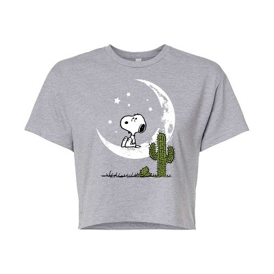 Women's - Peanuts - Snoopy Desert On Moon Cropped Graphic T-Shirt