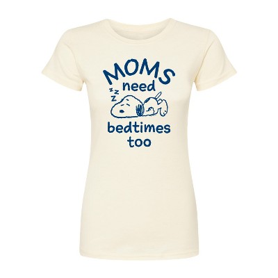 Women's - Peanuts - Moms Need Bedtimes Too Snoopy Fitted Graphic T-Shirt