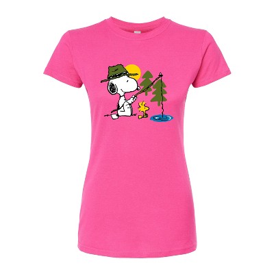 Women's - Peanuts - Snoopy Woodstock Fishing Fitted Graphic T-Shirt