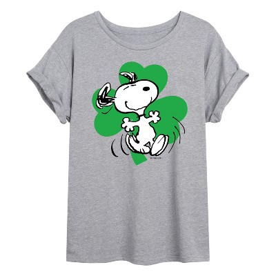 Women's - Peanuts - St. Patrick's Snoopy Clover Oversized Graphic T-Shirt