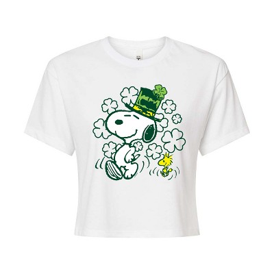 Women's - Peanuts - St. Paddy's Snoopy & Woodstock Cropped Graphic T-Shirt