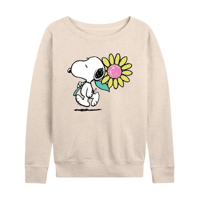 Women's - Peanuts - Snoopy Daisy Lightweight French Terry Wide Neck Long Sleeve Graphic Shirt