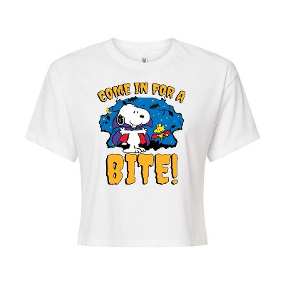 Women's - Peanuts - Snoopy Come In For A Bite Cropped Graphic T-Shirt