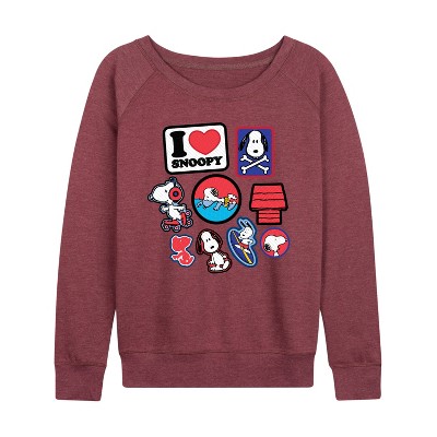 Women's - Peanuts - Snoopy Charmer Lightweight French Terry Wide Neck Long Sleeve Graphic Shirt