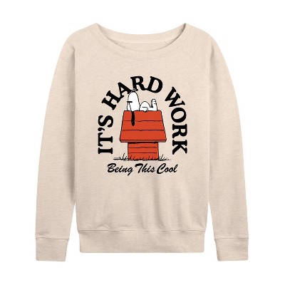 Women's - Peanuts - Hard Work Being Cool Snoopy Lightweight French Terry Wide Neck Long Sleeve Graphic Shirt