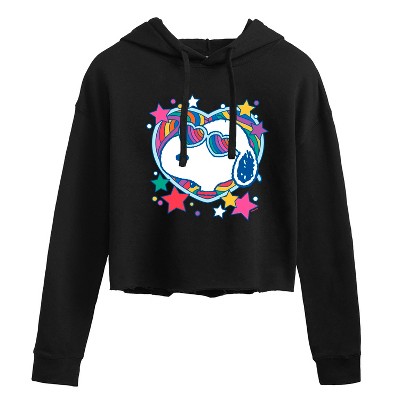 Women's - Peanuts - Snoopy Retro Groovy Heart Cropped Graphic Hoodie
