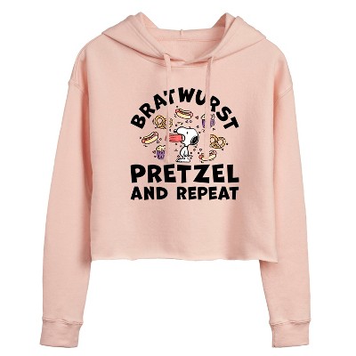 Women's - Peanuts - Bratwurst Pretzel And Repeat Snoopy Cropped Graphic Hoodie