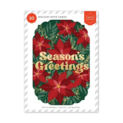 Green Inspired 10ct Holiday Boxed Cards Poinsettias