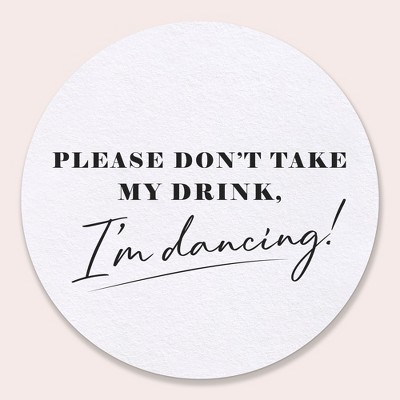 Big Dot of Happiness 25 Ct Black & White Simple Script Please Don't Take My Drink I'm Dancing Coasters, 4-Inch Disposable Round Paper Coasters