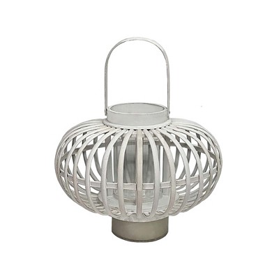 Essential Decor & Beyond 12.6" White Tabletop Metal Lantern Candle Holder With Handle