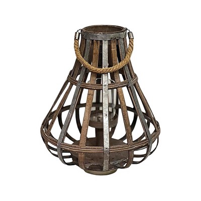 Essential Decor & Beyond Distressed Bamboo Lantern with Glass