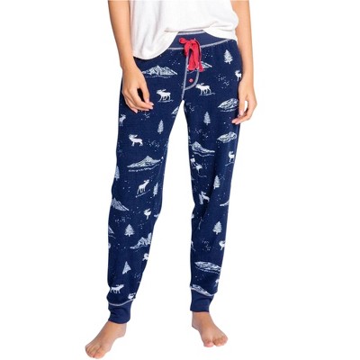 P.J. Salvage Womens Moose And Mountains Pajama Jogger Pants, navy, Small