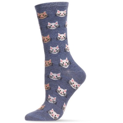 Memoi Women's Soft Cheerful Cat Face Cashmere Crew Socks Denim Heather 9-11