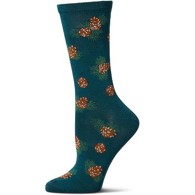 Memoi Women's Pinecones Themed Rayon Blend Novelty Crew Sock Dark Spruce 9-11
