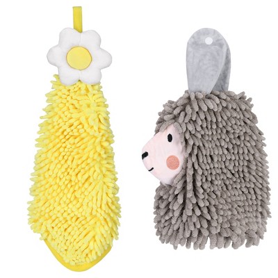 REGALWOVEN Flower and Sheep Shape Absorbent Fast Drying Chenille Hand Towels with Hanging Loop 6" x 15"/7" x 7" 2 Packs