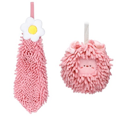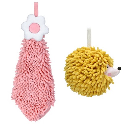 REGALWOVEN 2 Packs Chenille Hand Towel Flower and Cute Cartoon Hanging Hand Towel for Bathroom 6" x 15"/7" x 7"