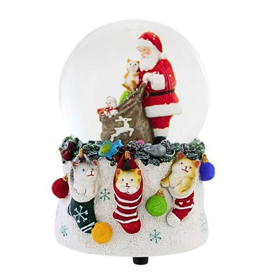 Roman 5.0 Inch Musical Cat Santa Dome Christmas Figurine , Christmas Decor Feline Musical (1PC)