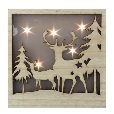 Northlight LED Lighted Buck and Doe Silhouette Wood Christmas Wall Plaque