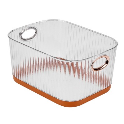 VECELO Refrigerator Organizer, Durable PET Storage Bin for Kitchen, Space Saving & Contain Spill, Orange