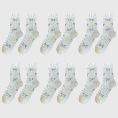 Anna-Kaci Women's 6-Pair Bow Pattern Crew Socks with Fuzzy Ruffled Cuff