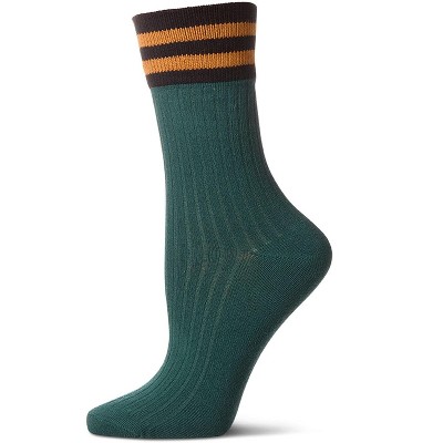 Hanes Women's Moves Premium Seamless Stretch 3pk Mid Crew Socks - White/Black 5-9: Y-Heel Stitching, Arch Support