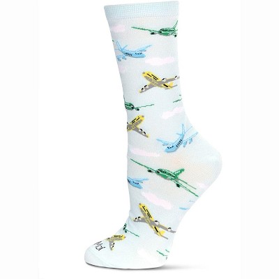 Memoi Women's Airplanes Bamboo Crew Socks Light Blue 9-11