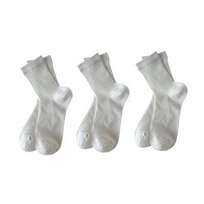 Anna-Kaci Women's 3-Pair Ribbed Crew Socks Soft Stretch Knit Classic Everyday Comfort Sock Set - White