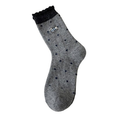 Anna-Kaci Women's 3-Pair Polka Dot Crew Socks with Embroidered Dog Detail Ruffle Cuff Soft Knit Everyday Sock Set - Dark Gray