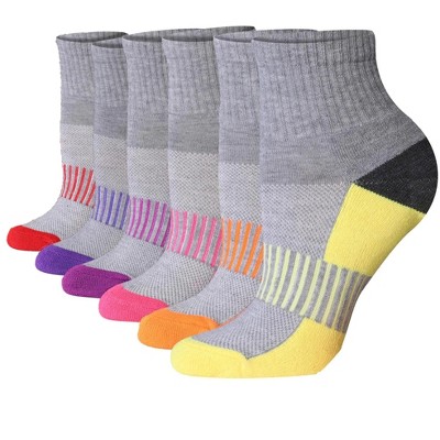 Tipi Toe Women's 6-Pairs Running & Athletic Sports Performance White-purple/Pink/Green Sole Colors Patterned Quarter Socks