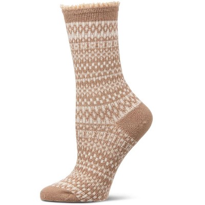 Memoi Women's "Pattern Metrics" Cotton Rich Crew Sock Tan One Size