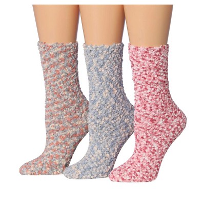 Tipi Toe Women's 3 Pairs Cozy Microfiber Anti-Skid Soft Slub-Yarn Patterned Fuzzy Crew Socks