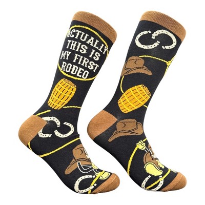 Crazy Dog Men's Actually This Is My First Rodeo Socks Funny Sarcastic Western Graphic Novelty Footwear For Men