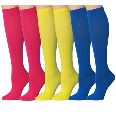 Tipi Toe 3 Pairs Compression Socks for Men & Women Cheerful Hues Solid Colors Patterned Knee High Socks (12-14 mmHg)