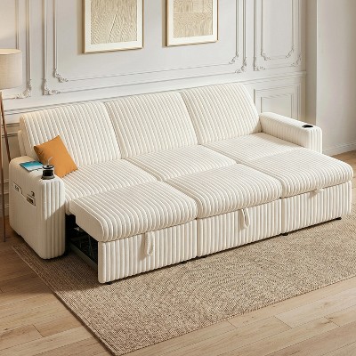 Modern Corduroy Convertible Loveseat Sleeper Sofa Bed with Pull-Out Bed, Built-in Charging Station, Adjustable Backrest & Side Pockets for Apartments