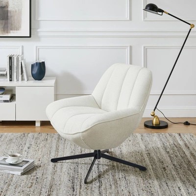 HOMLUX Modern Swivel Accent Chair Fabric Upholstered Lounge Chairs with Metal Legs Armless Sofa Chairs for Living Room&Bedroom,Off White