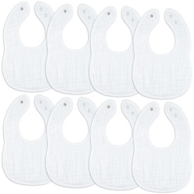 Muslin Cotton Baby Bibs, 8 Pack, Adjustable Size with Easy Snaps, Soft and Super Absorbent, Washable and Reusable By Comfy Cubs