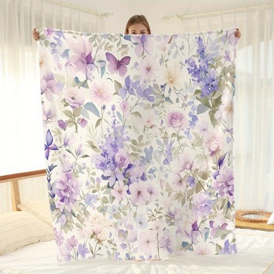 Lomsoe Vintage Floral Bouquet Flannel Blanket - All Seasons Soft and Warm Throw Blanket for Napping, Camping, Travel, Office, Home Decor