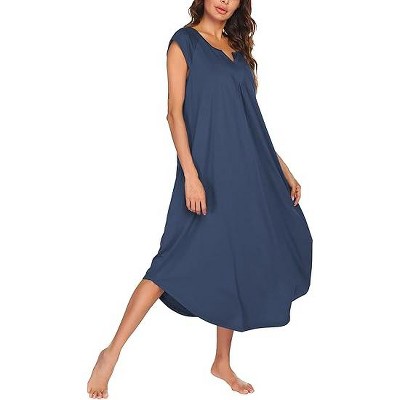 Ekouaer Womens Nightgown V Veck Cap Sleeve Nightshirt Soft Long Lounge Wear