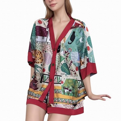 Anna-Kaci Lounge Women's Octopus Print Pajama Set with Button Front Long Sleeve Top and Relaxed Fit Wide Leg Woven Pants