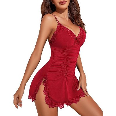 Avidlove Womens Lingerie Nightgowns for Women Soft Ruched Babydoll Lingerie Wine Red XXL
