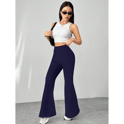 Med Wash Soft Denim Wide-Leg Athleisure Pants